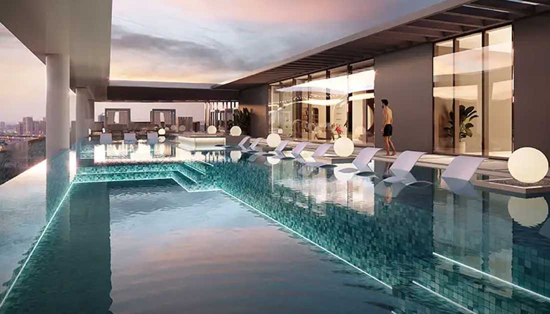 Amazonia Residence at Al Jaddaf Waterfront is a captivating residential building by Palladium Group that blends modern & stunning 1 & 2-bedroom apartments in Dubai. This low-rise 12-storey epitome denotes a striking and visually engaging facade, complemented by the Biophilic design design principals with selected swimming pools on levels, laced with premium stones and metallic exterior. The gleaming glass-made infrastructure with sleek glass railings, extended balconies and thoughtfully crafted design enhance its overall contemporary beauty. Adorned with landscaped surroundings, every home unit merges an amazing combination of quality materials and detailed design that effortlessly ensures a modern and sustainable setup for urban families.