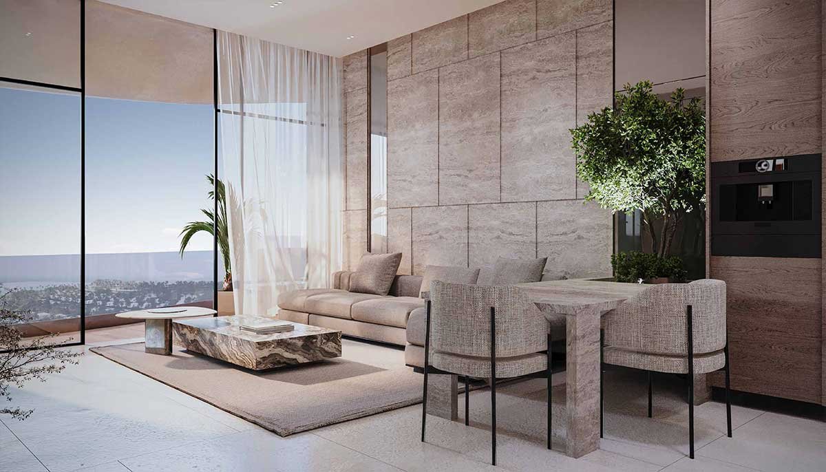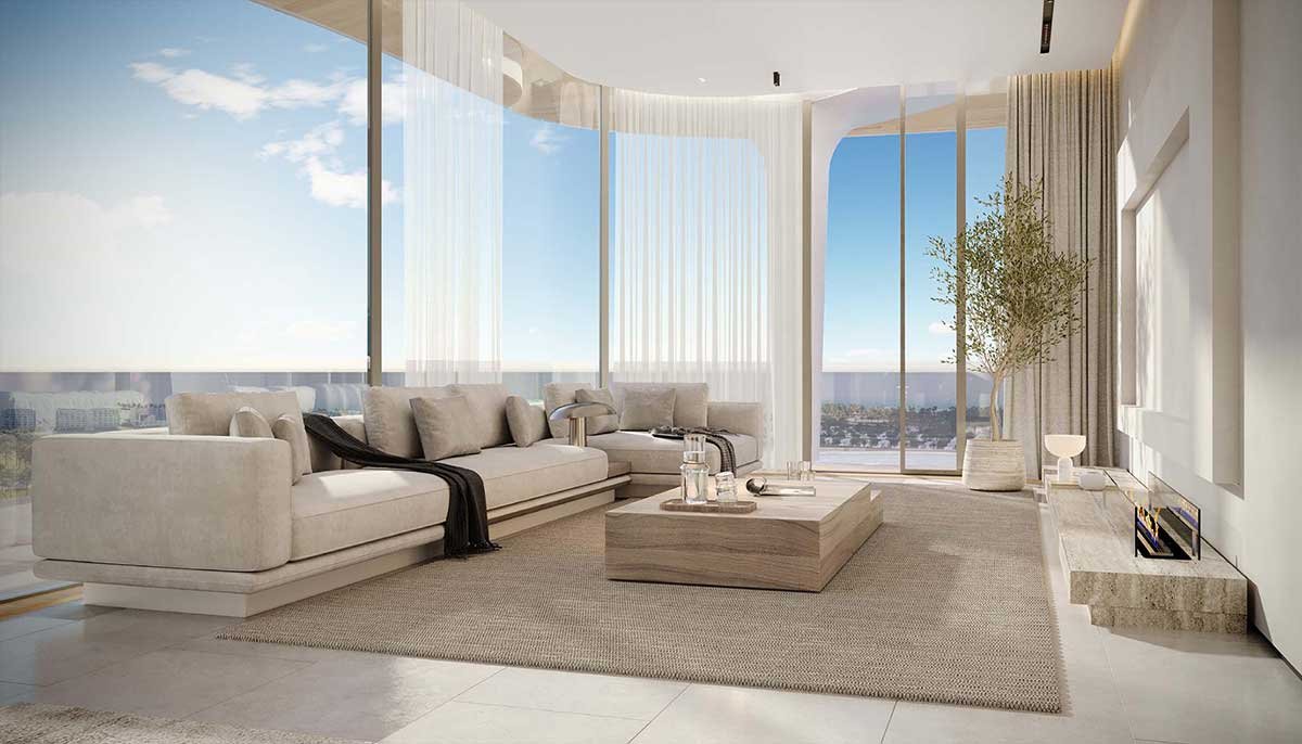 Residents will delight in sophisticated features such as smart-home appliances and personal assistant robot, combined with luxury touches including a personal sky pool in each apartment, spectacular ocean and city views, and kitchenware supplied by the prestigious Villeroy & Boch. This is where the serene simplicity of island living meets unmistakable Dubai modernity and sophistication.