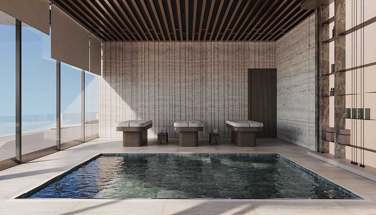 Additional enriching amenities include a concierge service, steam rooms, kids pool and play area, and roman baths.