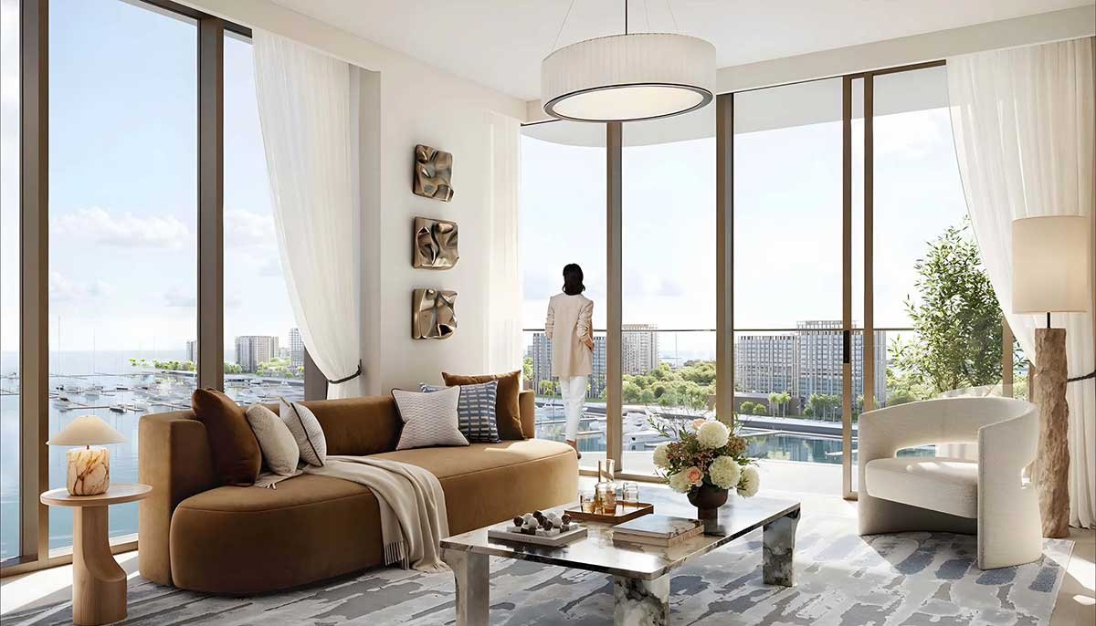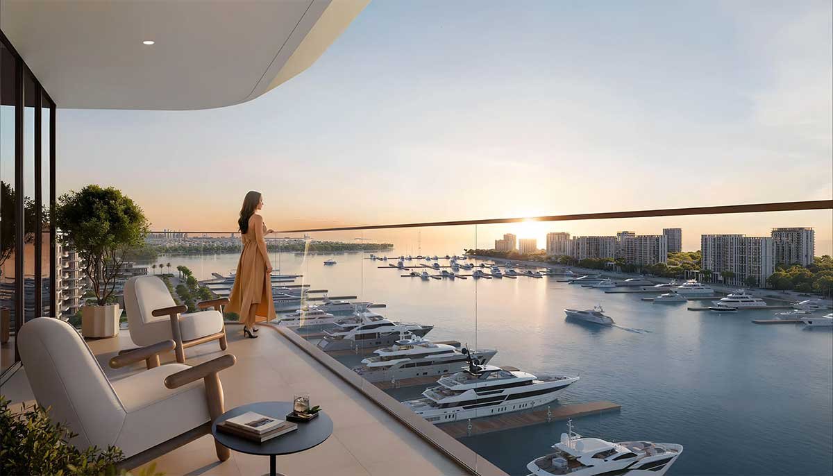 Gulf and Dubai skyline views, waterfront location, marina lifestyle, resort-style amenities, amazing connectivity.