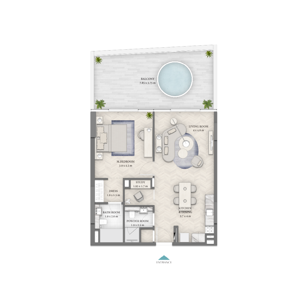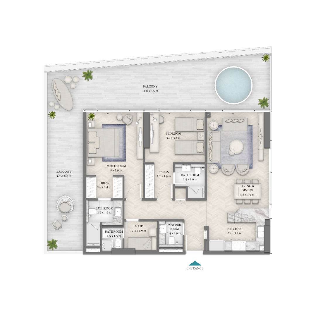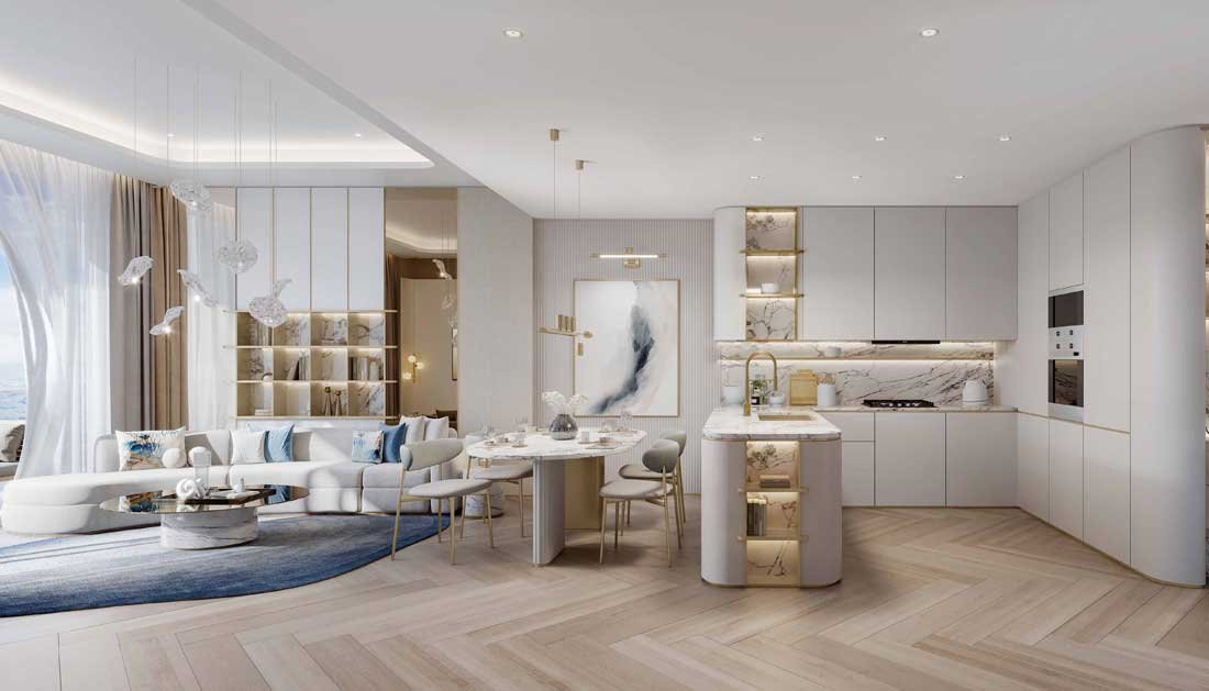 The project offers a collection of 1–3 bedroom apartments and 3-bedroom duplex penthouses. Property prices start from AED 1.9M (USD 517K), with a 60/40 payment plan available from the developer.