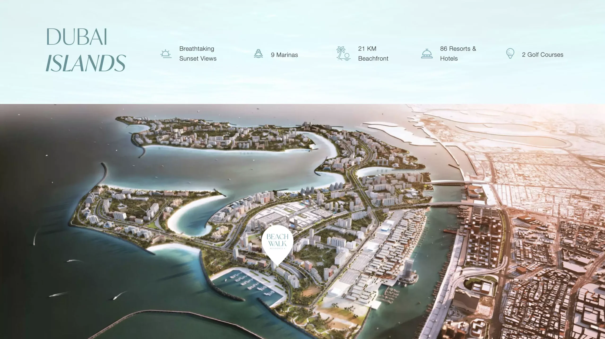 The development boasts a prime location on Dubai Islands, offering fast access to pristine beaches and 9 marinas. The residential complex will be surrounded by luxury golf courses, resorts, and hotels.
