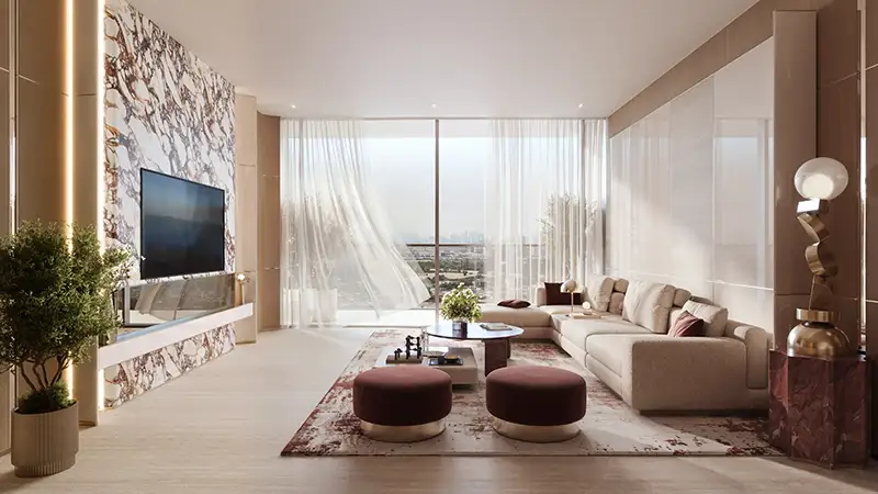 Binghatti Etherea a new residential development by Binghatti Developers offers studio, 1 & 2-bedroom units in JVC. A contemporary ode to urban living, this development turns architecture into an experience of rhythm, balance and intelligent design. This home’s exterior is the showpiece of the developer that harmony between sculptural grace and practical order a living environment at once serene and expressive. manner so as not to detract but rather combine with them, in harmony while keeping a strong and distinctive architectural character.