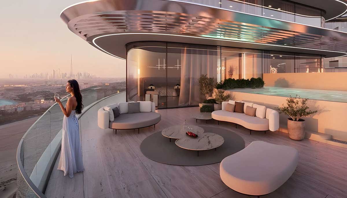 The twin towers showcase Binghatti’s signature sculpted design language—radial symmetry, expressive façades, and immersive interplay of light and material. Floor-to-ceiling windows, expansive balconies, and tailored spatial layouts elevate the emotional quality of each residence. Whether it’s a compact studio or an expansive 4-bedroom sky home, each unit is designed as a sanctuary of light, space, and elegance.