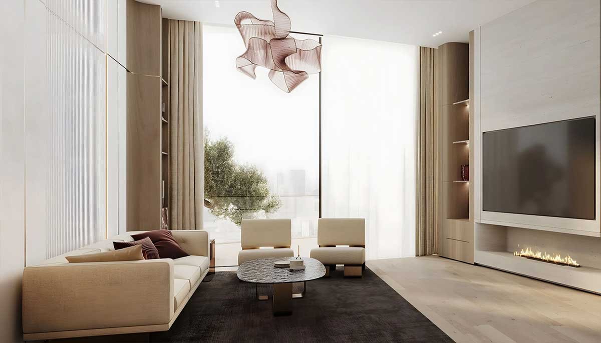From brushed black glass and travertine porcelain to oak wood accents and Rosso Levanto marble, every finish reflects Binghatti’s meticulous attention to detail. Interiors feature carefully composed spaces with warm tones, natural textures, and optimal lighting to enhance well-being and sophistication.