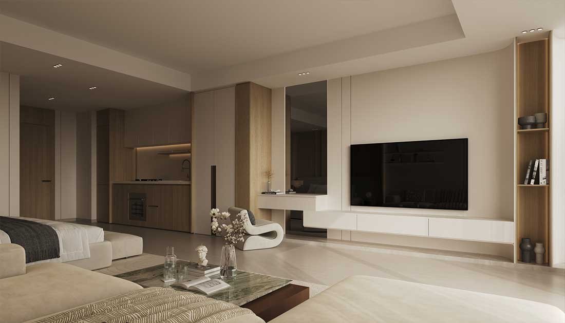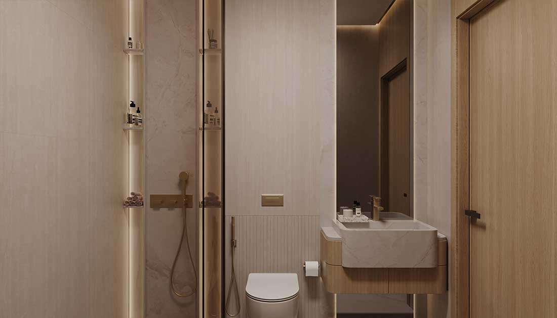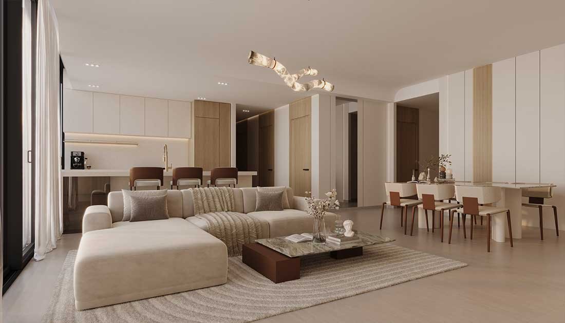 Each home is crafted with exquisite finishes, balancing cool marble with the warmth of natural wood for a refined and inviting ambience. Spacious balconies complement every residence and provide stunning views of the lush green surroundings.