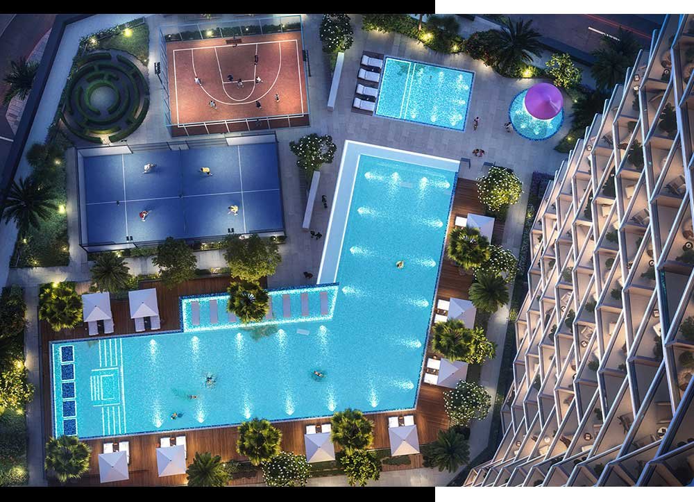 Binghatti Haven is designed to elevate everyday living with an array of premium amenities. Residents can enjoy a swimming pool, Jacuzzi, walking/jogging tracks, paddle tennis court, and a hedged maze. Additional features include a children’s pool, a basketball court, and much more.