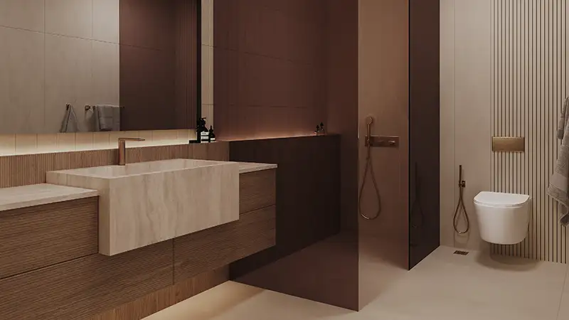Each element of the design reflects a meticulous attention to detail, from the fluted travertine walls to the bronze glass windows. This careful curation ensures that every space is a masterpiece in its own right, a place where life shimmers with limitless potential. Step into a world where every detail is crafted with care, where the interiors shimmer with a jeweler’s precision, and the atmosphere exudes tranquillity and warmth.
