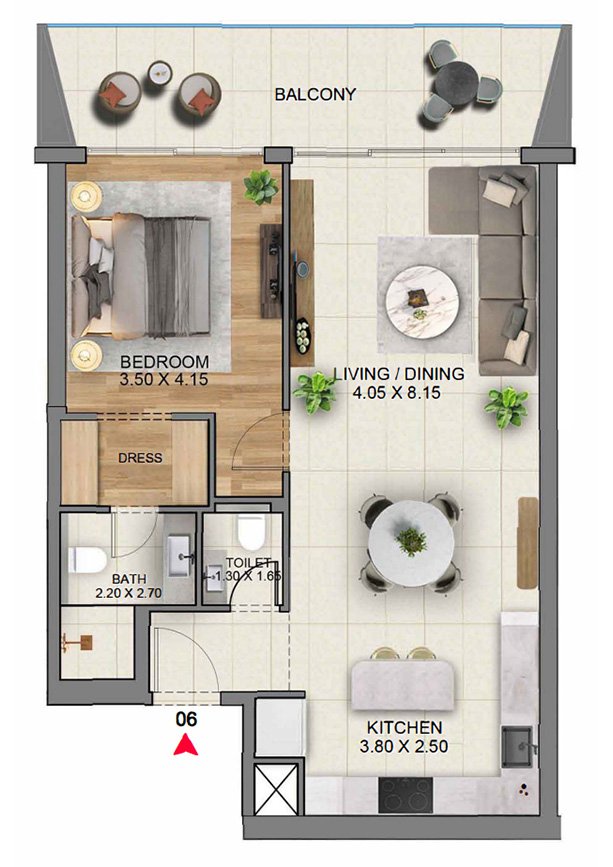 - 1-bedroom apartment: Up to 1,049 sq. ft