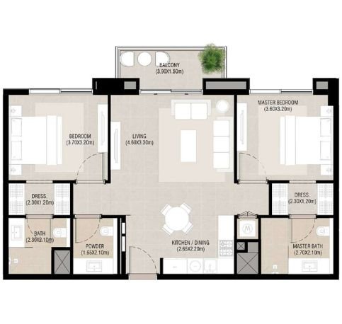 Two-bedroom residences begin at AED 1.58 million (approx. USD 430,000)