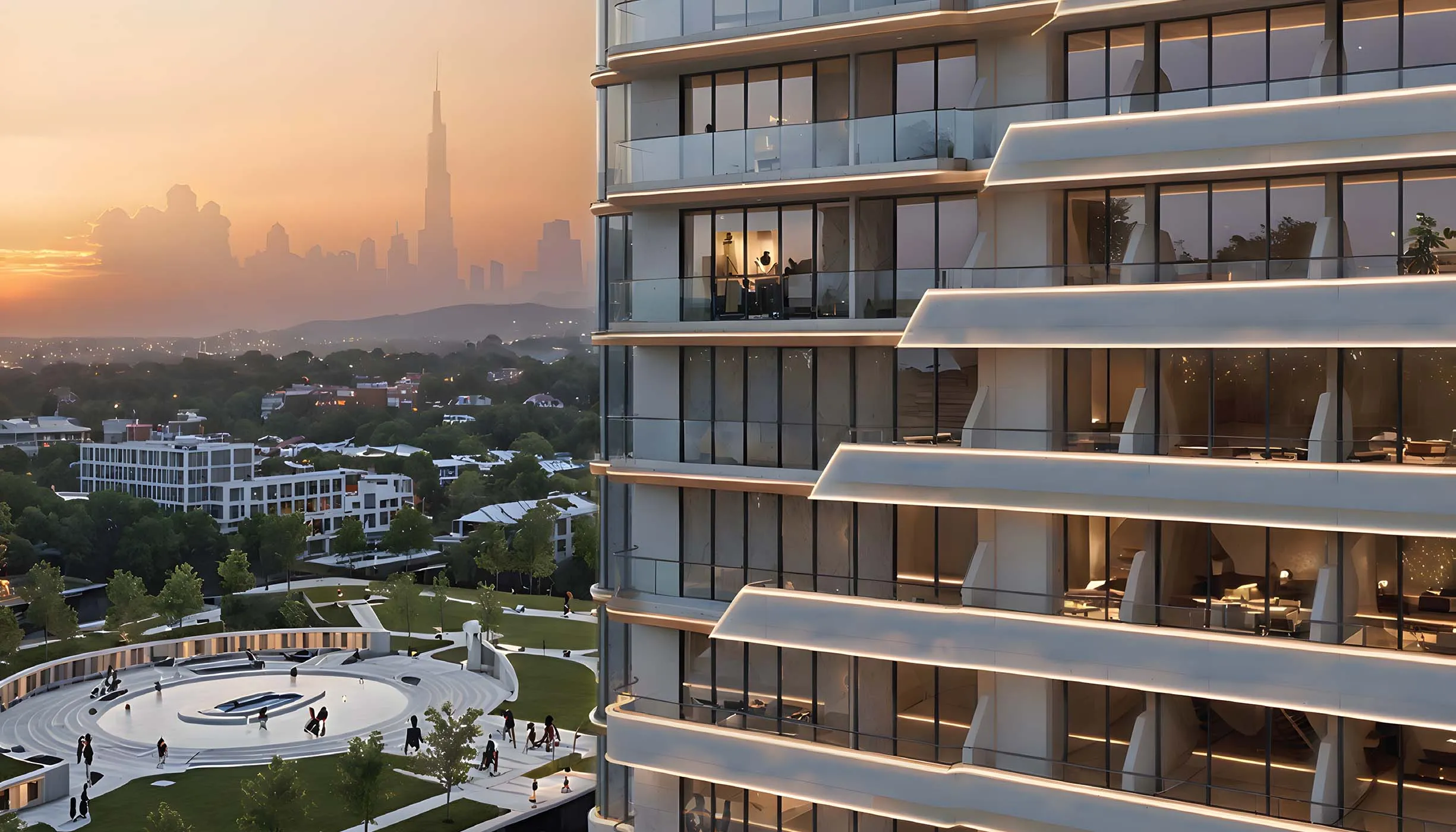 Smart homes, fully-furnished premium apartments, future-focused, panoramic views.