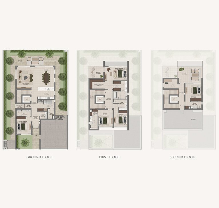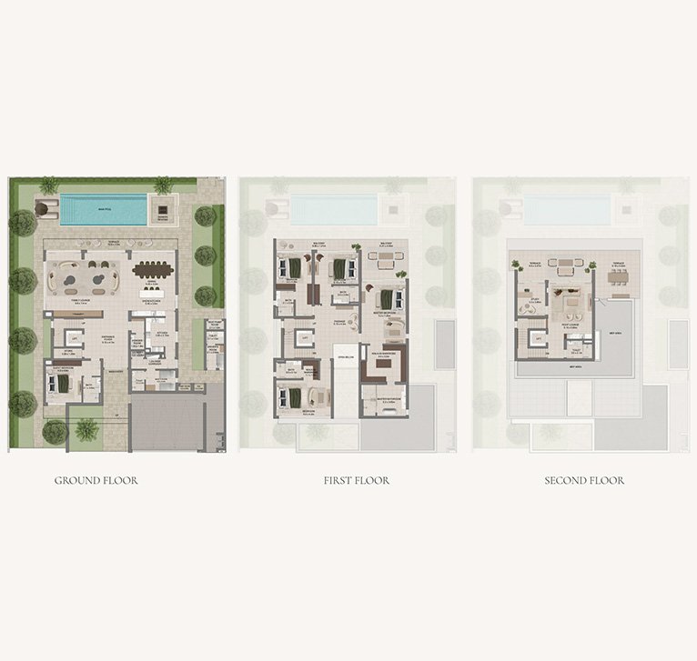 The community will consist of 22 unique residential clusters, offering sophisticated residences. The initial phase offers a collection of 3–5 bedroom standalone villas, available in Luxury, Ultra-Luxury, and Equestrian Luxury categories. The exceptional 5-bedroom Equestrian Luxury villas feature a private pool and a chic outdoor seating area. Property sizes range between 2,949 sq. ft and 8,607 sq. ft.