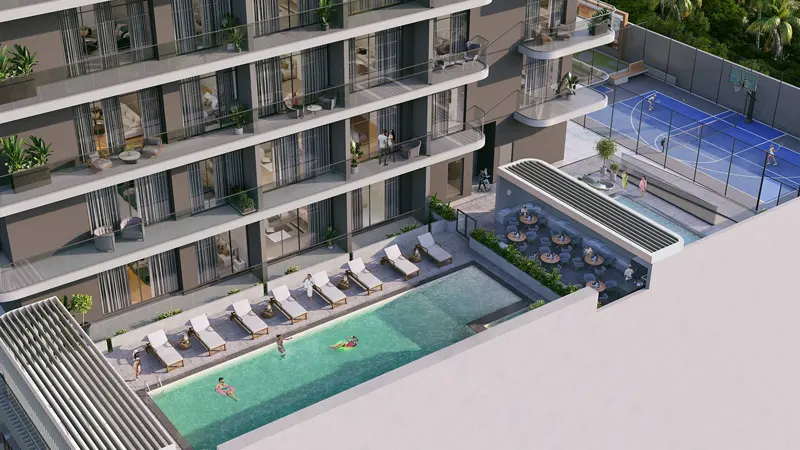 The amenities at Livel Residenza at JVC Dubai offer something for everyone. Sports enthusiasts can enjoy padel tennis and pickleball courts, while professionals benefit from co-working spaces and podcast studios. The property also features indoor and outdoor gyms, steam and sauna rooms, an aqua zone for kids, an adult pool, a BBQ area, and a pet-friendly park. Added conveniences include a coffee shop, EV charging station, and a concierge service for short-stay residents.