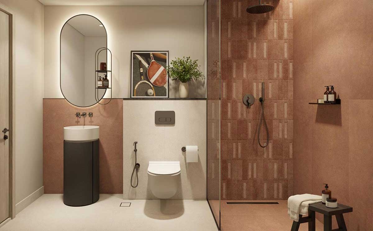 Magenta Tower offers 190 1-3 bedroom apartments across multiple layout types. 1-bedroom apartments start from AED 1.35M, with 2-bedroom options including standard tower layouts and low-rise configurations with optional maid’s rooms. 3-bedroom apartments are available in standard and terrace layouts. All interiors feature cool timbers and warm terracotta in light or dark palettes to match residents’ preferences.