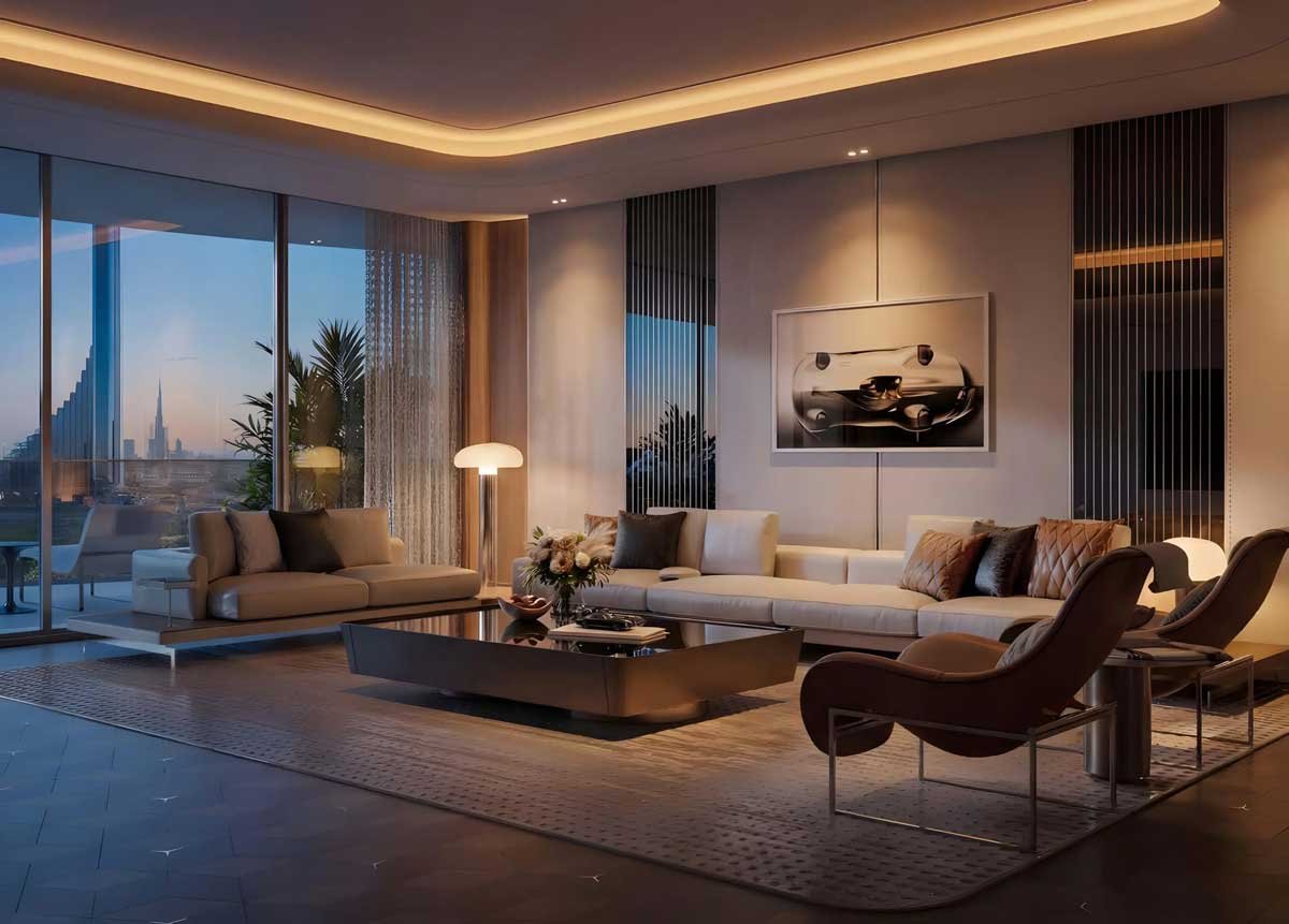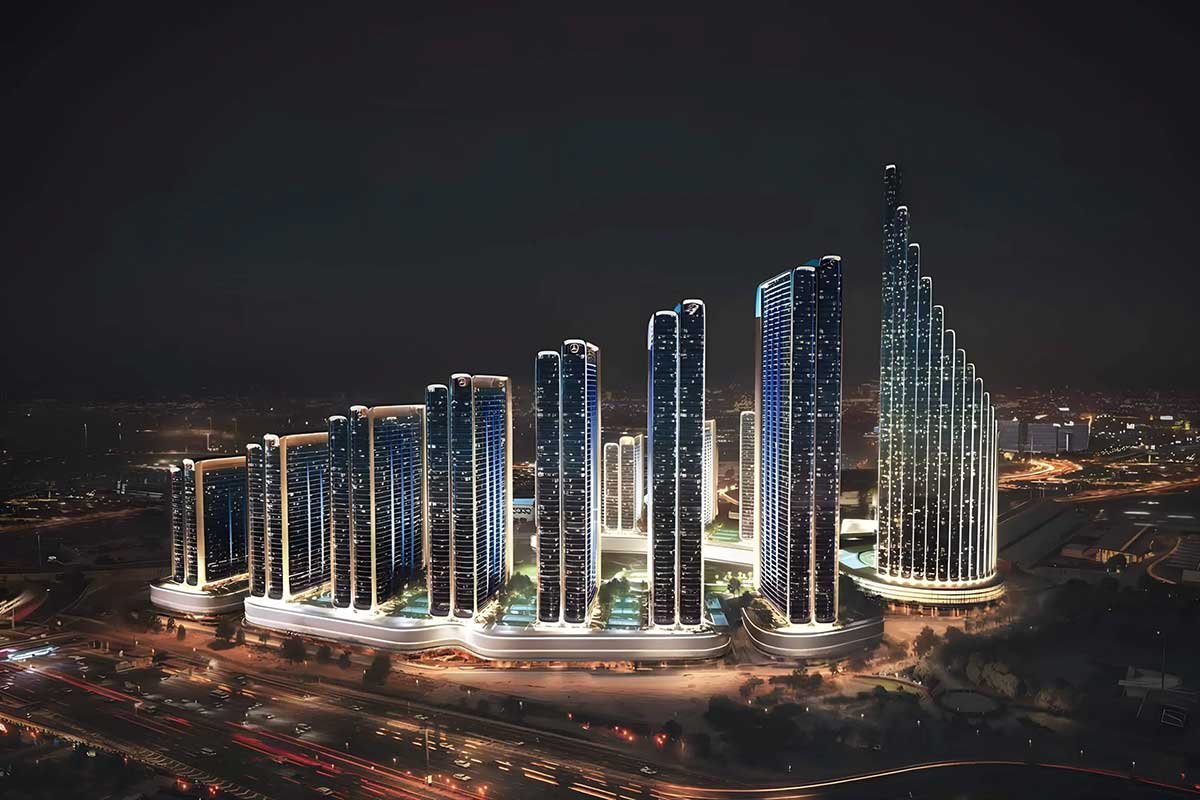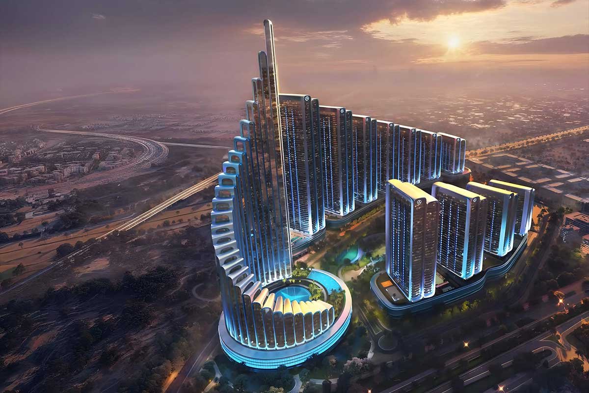 Mercedes-Benz Places – Binghatti City features studios, 1-5BR apartments spanning 12 high-rise towers, with unit sizes spanning 362 sq. ft to 18,101 sq. ft and striking branded interiors.