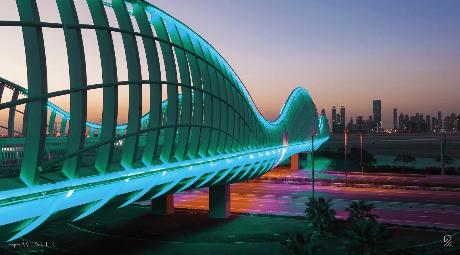 Meydan Avenue C is situated just west of the Meydan Racecourse and Grandstand. Meydan Racecourse District is a Dubai icon known for its captivating attractions, such as the Meydan Racecourse and Grandstand, famous for hosting the annual Dubai World Cup, the luxurious Meydan Hotel, and a variety of outstanding residential communities. Beyond the exciting racecourse events, there’s a top-tier golf course and upscale shopping options, and the district’s lush greenery is adorned with numerous parks, open areas, and pathways for walking and cycling, making it a perfect place for leisure and outdoor activities.