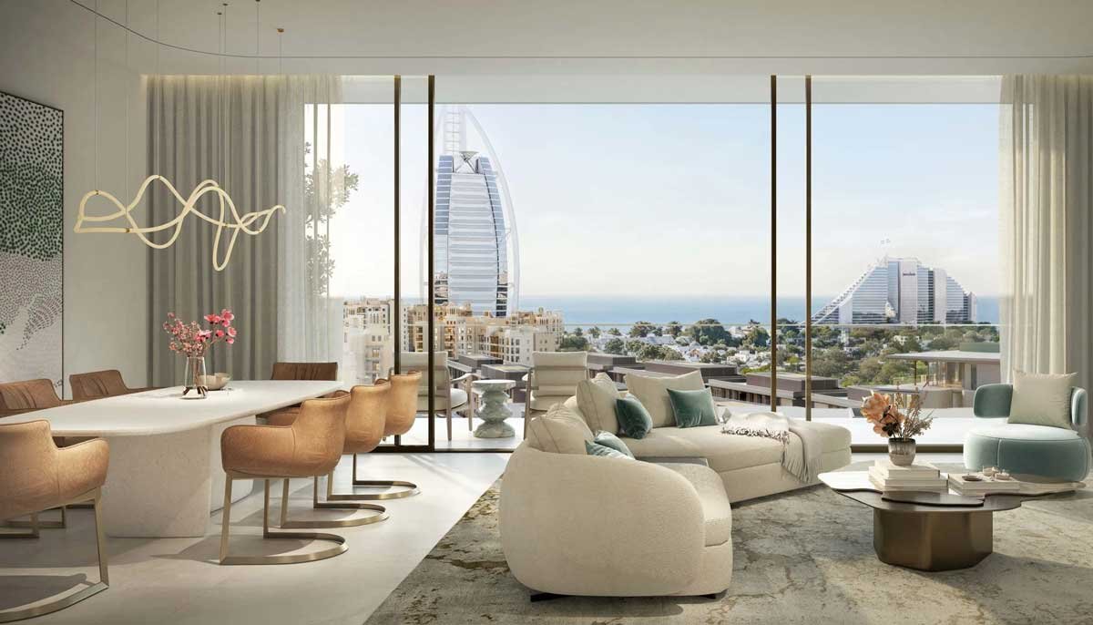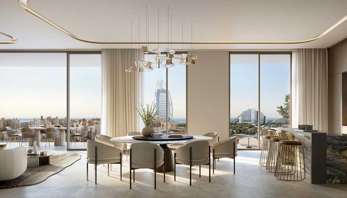 Nourelle is the newest launch at Madinat Jumeirah Living (MJL), a freehold luxury community by Meraas located directly opposite the Burj Al Arab. Comprising just 66 apartments spread across 3 interconnected buildings linked by a dramatic skybridge with sky gardens and infinity pools, the project delivers a highly exclusive lifestyle at the heart of an iconic Dubai address.