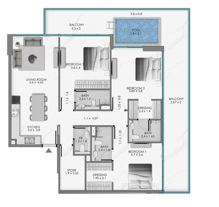 Three-bedroom residences are priced from AED 3.9 million (approx. USD 1.06 million)