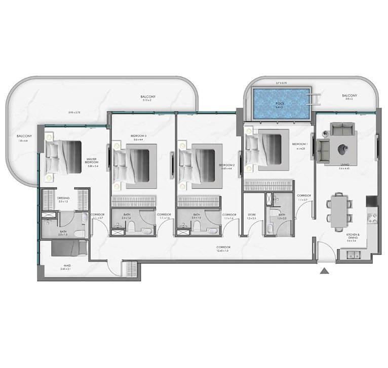 Ocean Bay by Samana features a refined collection of low-rise residences, offering 1–4 bedroom apartments thoughtfully designed for coastal living. Many homes include private infinity pools, storage rooms, and maid’s quarters — each residence crafted as a serene, sunlit retreat with open layouts, elegant finishes, and uninterrupted views of the sea.