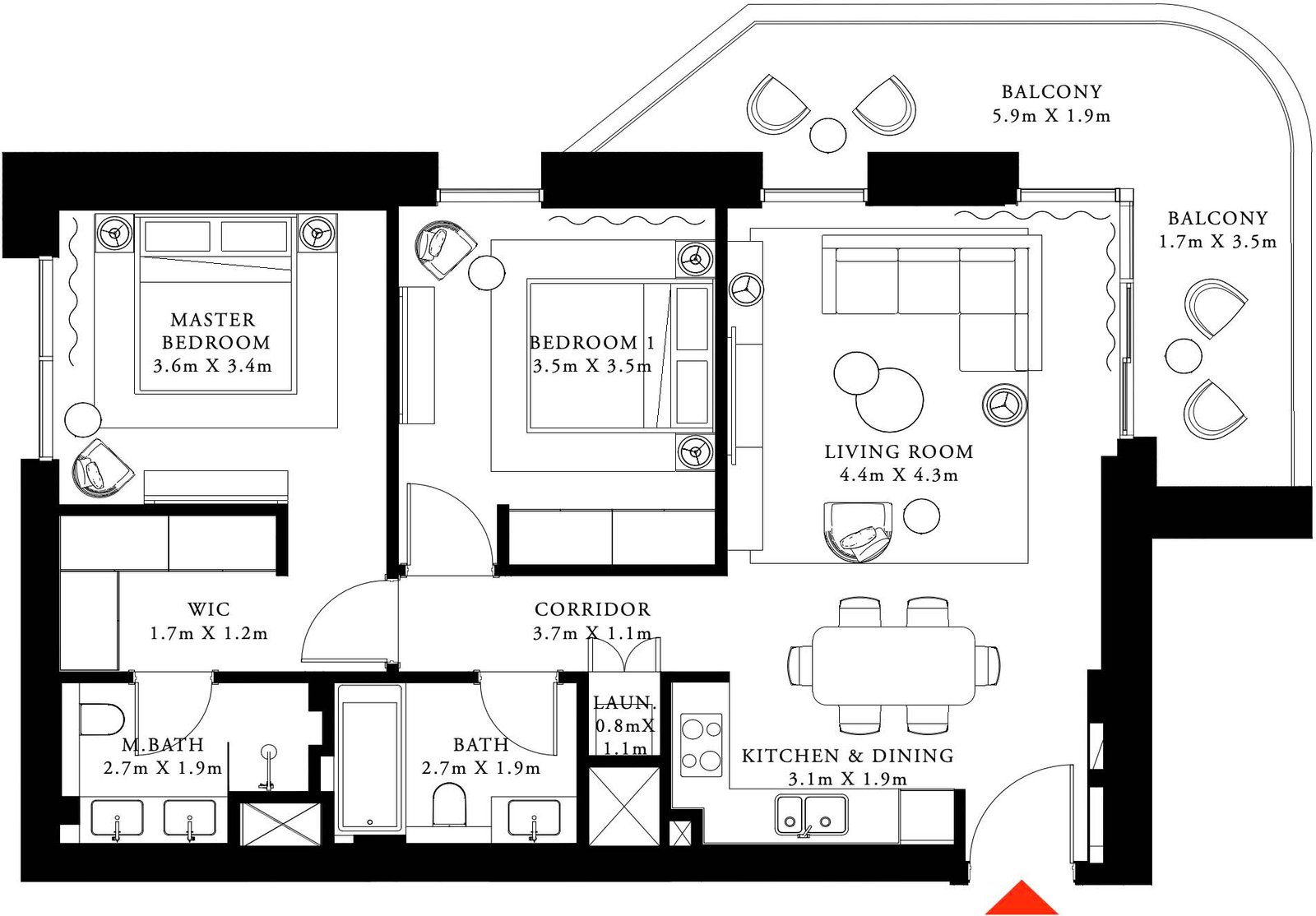 Shared amenities include an infinity pool overlooking the sea, a lounge deck, a safe playing space for kids, an outstanding fitness center and a spa. There’s a supermarket and F&B options onsite. The residents will be able to use additional services, such as front desk, comprehensive security system 24/7 and parking.