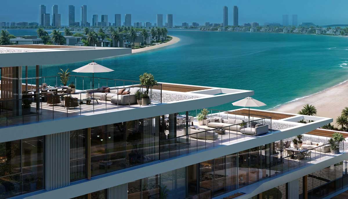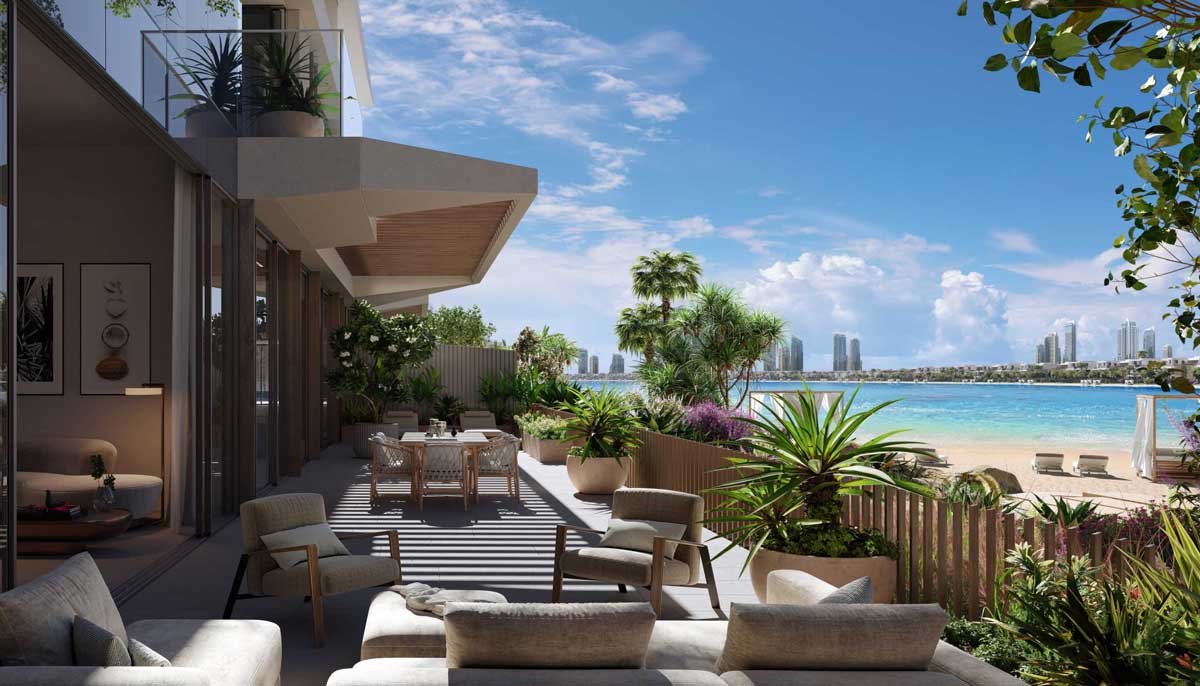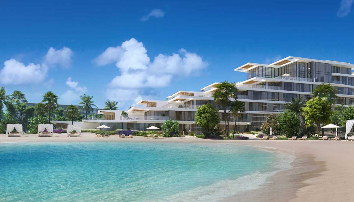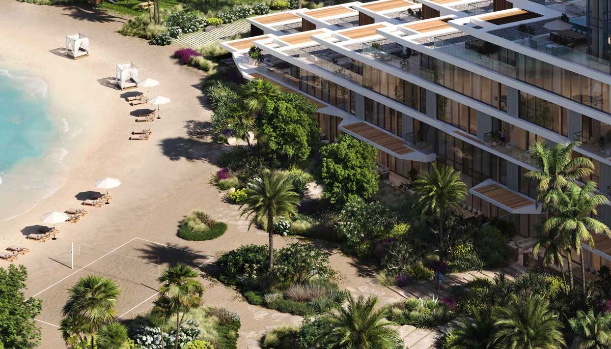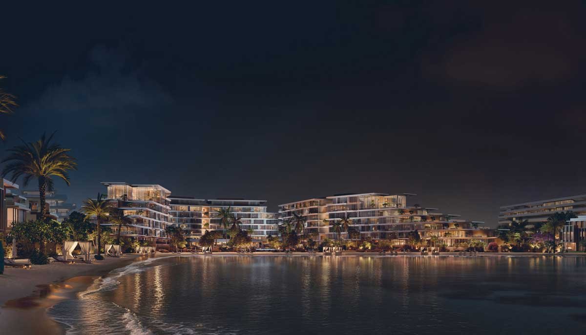 A resort-style apartment community on the Palm Jebel Ali Spine — elegant low-rise buildings with panoramic sea views with direct beach access.