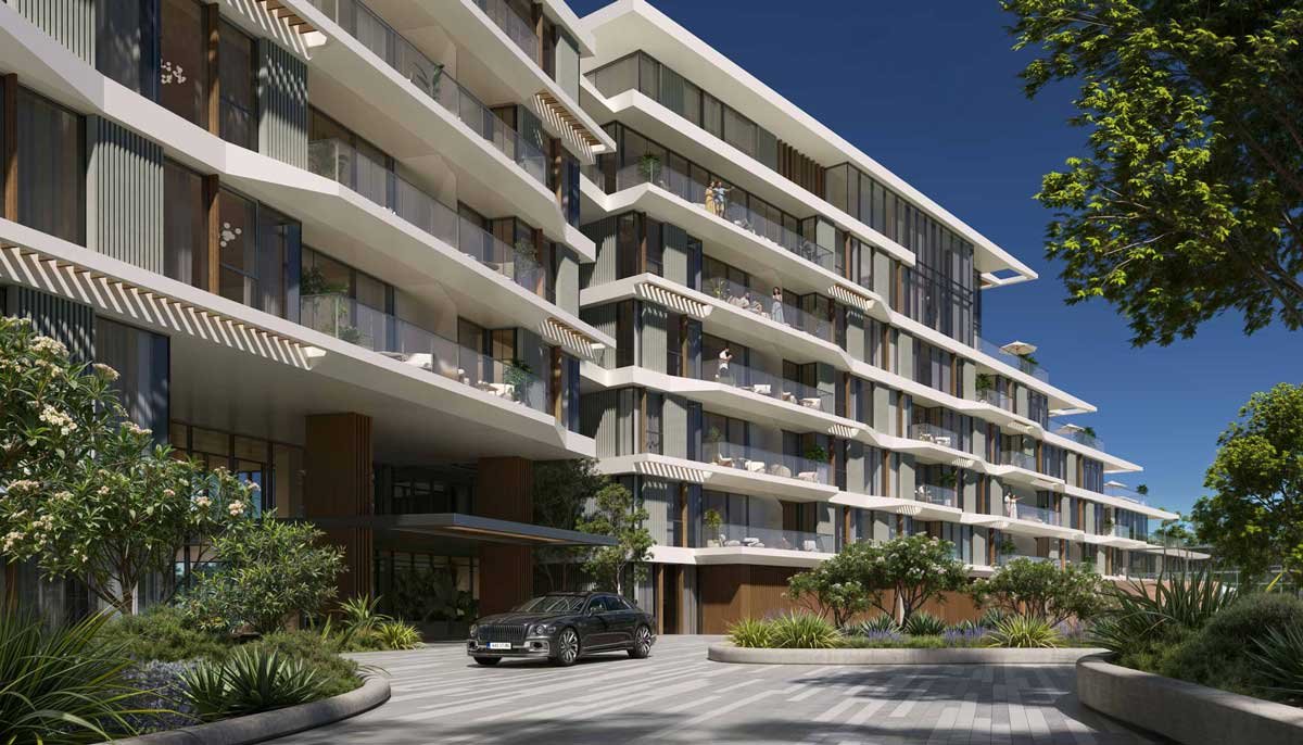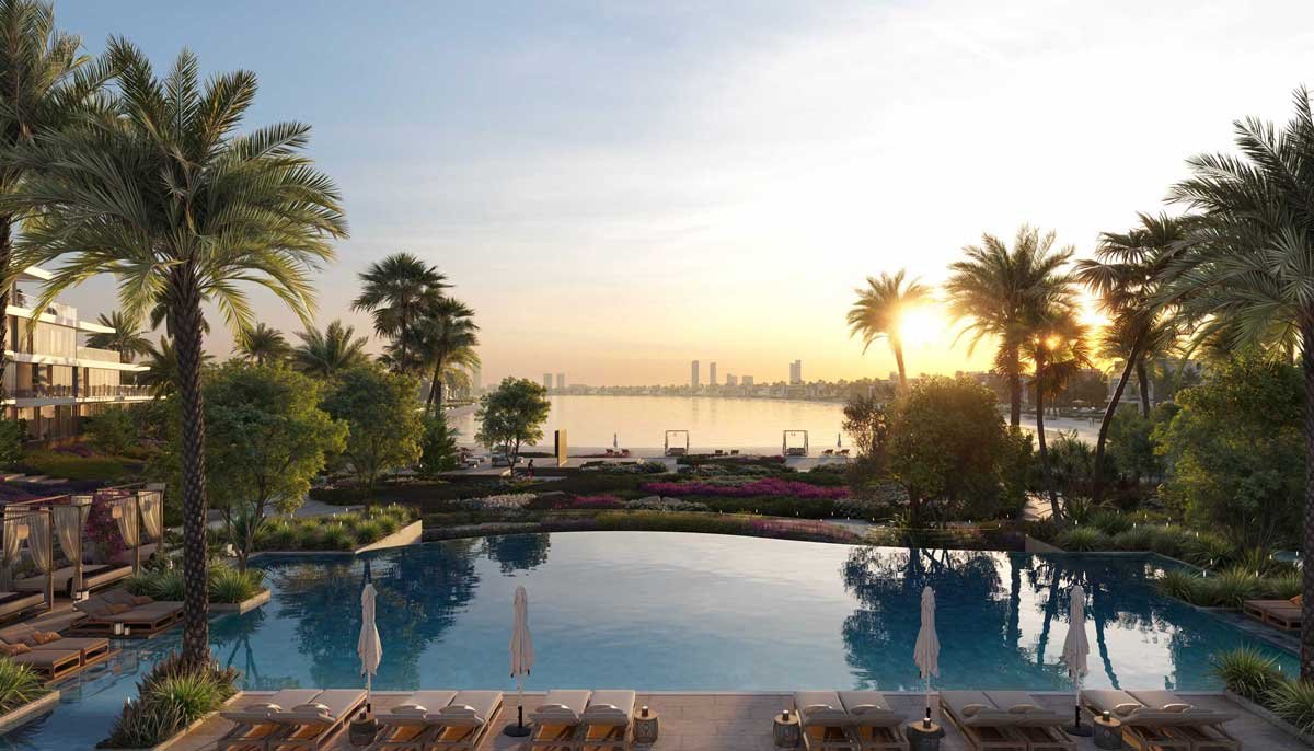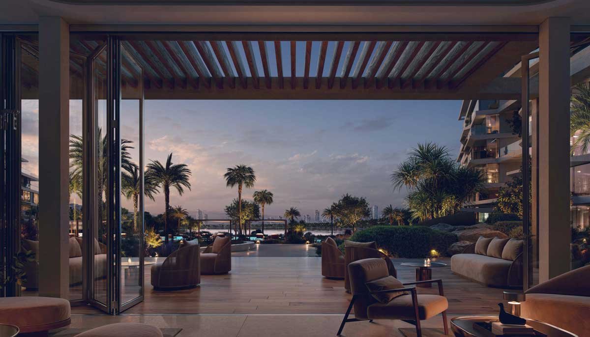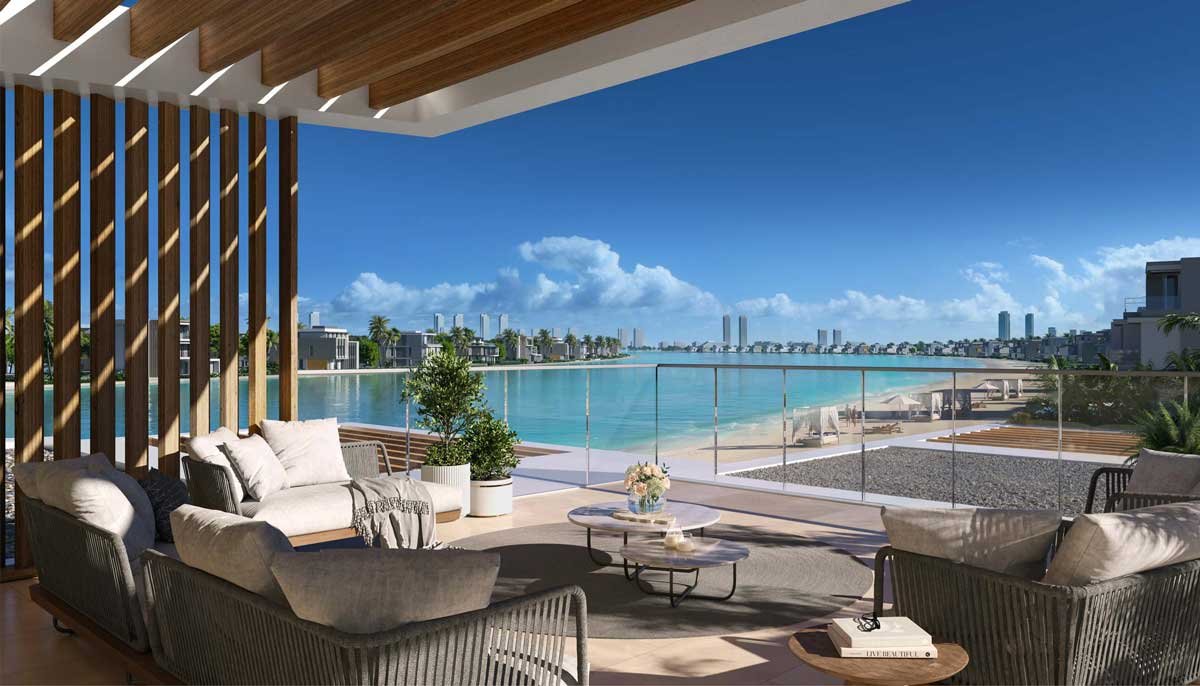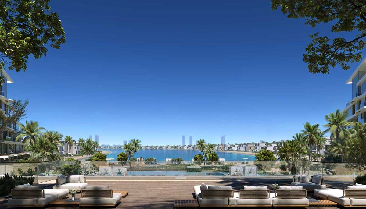 A resort-style apartment community on the Palm Jebel Ali Spine — elegant low-rise buildings with panoramic sea views with direct beach access.