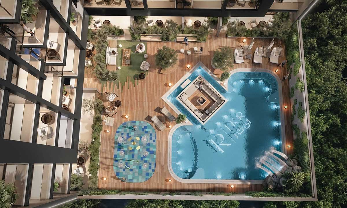 An iconic 17-storey tower in Jumeirah Village Circle, offering studio, 1-bedroom, and 2-bedroom apartments. Each unit features smart home technology and a fully equipped kitchen, combining modern comfort with timeless design.