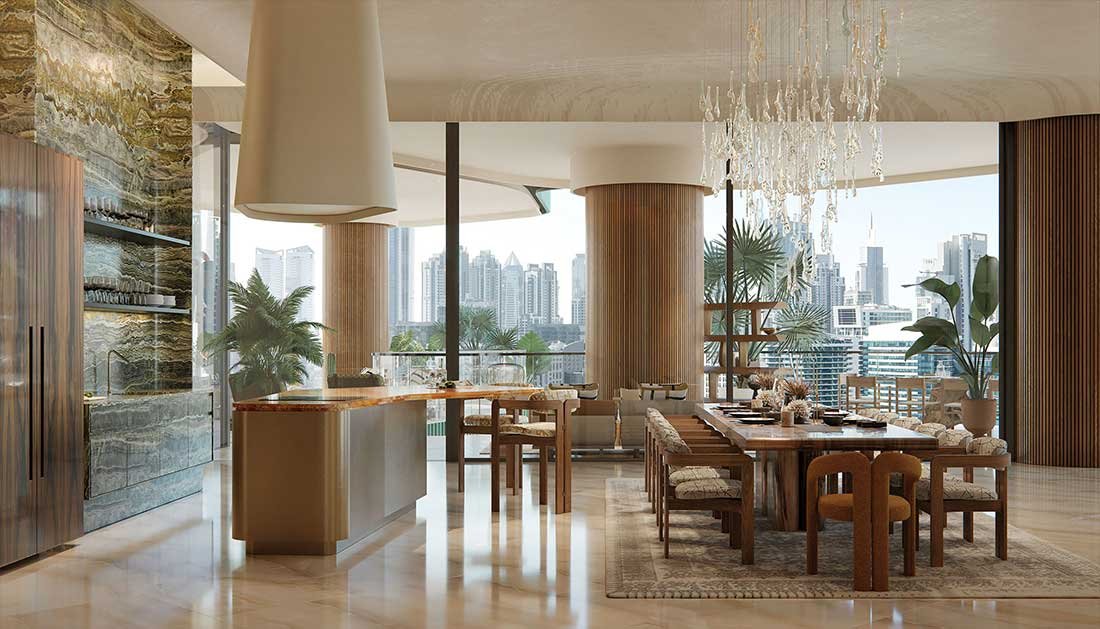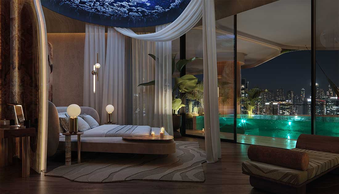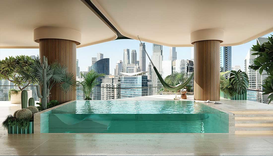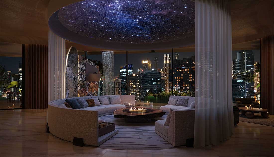 Total areas of the units range from 3,064 sq. ft to 16,256 sq. ft. As the G+3P+19-storey project is inspired by the Tree of Life, all residences will show a strong connection to natural elements, including stone and engineered wood flooring. All premises will feature private terraces with dining areas and hammocks, as well as private waterfalls and swimming pools. European appliances with high energy ratings and signature stone countertops will be present in the kitchens. Generous storage spaces will be offered to the occupants of Eywa.