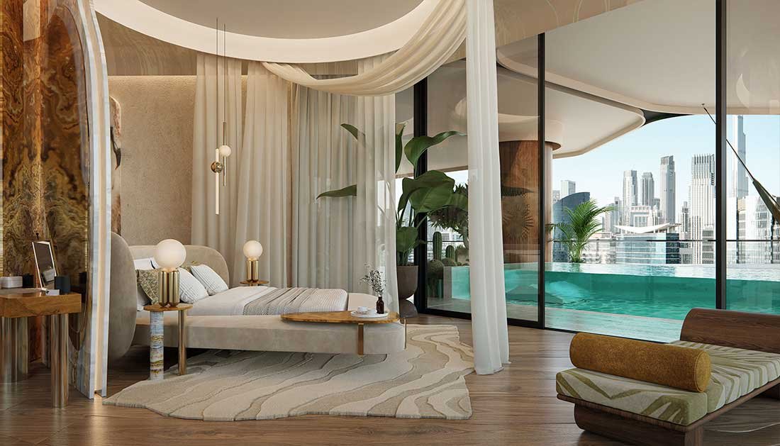 The luxury development of Eywa will be located in the financial area of Business Bay and sit on the bank of the iconic Dubai Water Canal. Residents will benefit from easy access to the key highway of Dubai, Sheikh Zayed Road, as well as the close proximity to key locations of the emirate. Thus, travel time to Downtown Dubai will take 10 minutes by car, while Dubai Marina will be accessible within 20 minutes. Dubai International Airport will be reachable within a 15-minute drive.