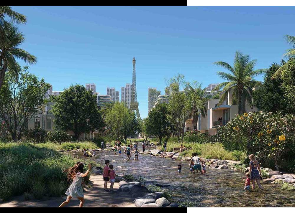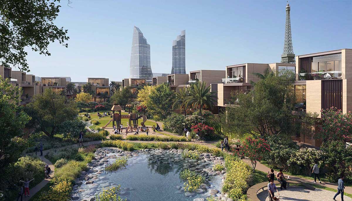 The community will include all essential infrastructure to support a balanced and comfortable lifestyle — a hospital, an international school, a shopping mall, a business hub, sports courts, and children’s play areas. Among its signature landmarks are an 82-meter replica of the Eiffel Tower, the largest mosque in South Dubai, and a scenic observation deck. From sports facilities, shops, and restaurants to a theater and library — every detail has been thoughtfully considered.