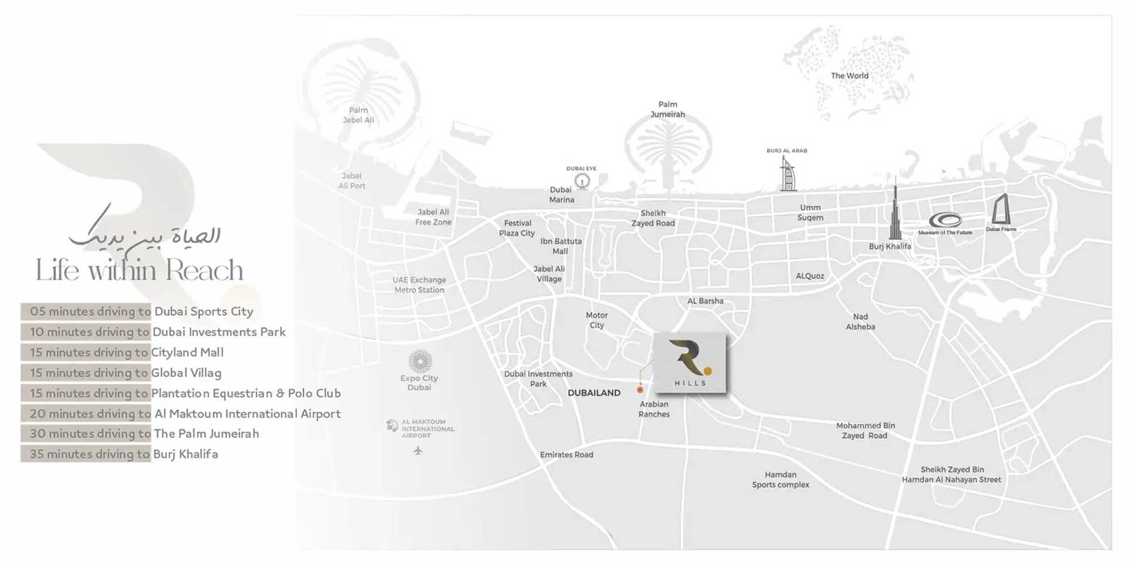 Designed to be Dubai’s entertainment hub, Dubailand is an unparalleled opportunity for both living and investment. Dubailand stretches out across an immense 3 billion square feet in the heart of the city, making it the largest district in Dubai. The area is divided between a vibrant mix of vast residential communities and popular leisure attractions. Well-known residential projects and communities such as Al Barari and Arabian Ranches fall within this district, as well as the anticipated upcoming mega-project of Mohammed Bin Rashid City, and our very own Rukan community.
