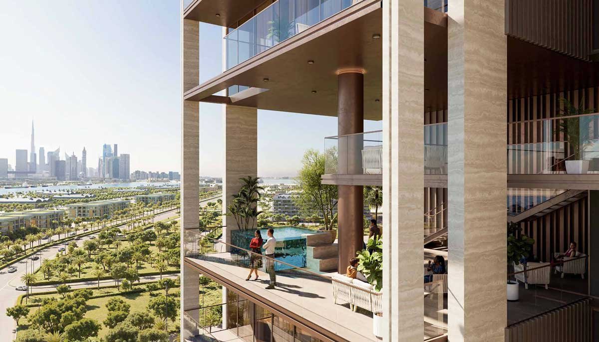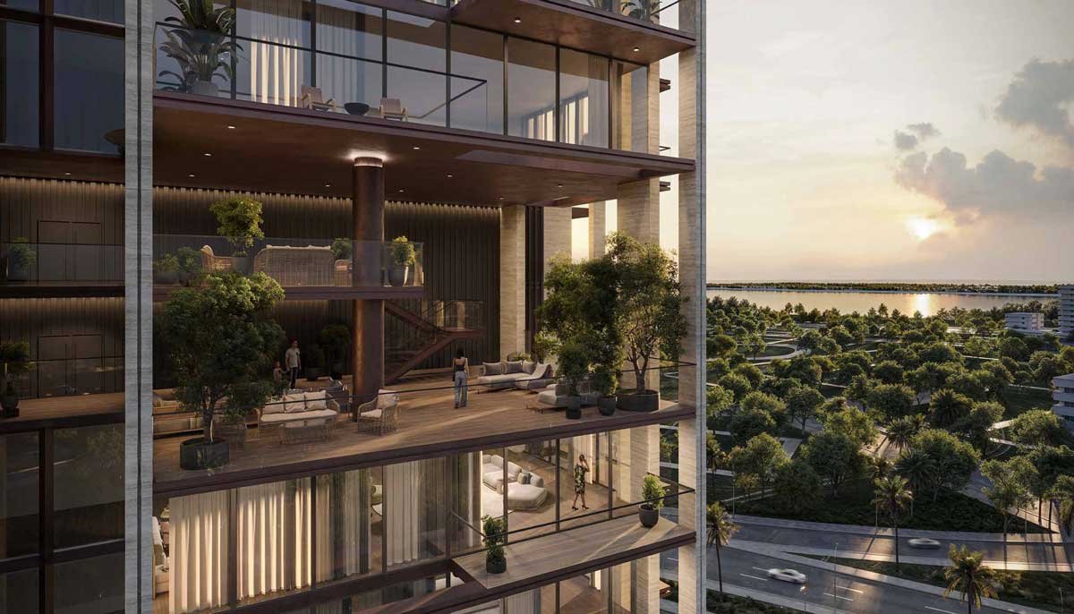 Imtiaz Developments created Sea Cliff, a stunning 17-story waterfront-inspired property on the Dubai Islands. The project, which has 170 completely furnished 1-4BR apartments with Hermès accessories, combines a tranquil island lifestyle with a sophisticated indoor-outdoor flow. Modern architecture with earth-toned facades, stepping terraces, and resort-style features like pools, spa areas, and beautifully planted gardens are all part of its luxurious design.