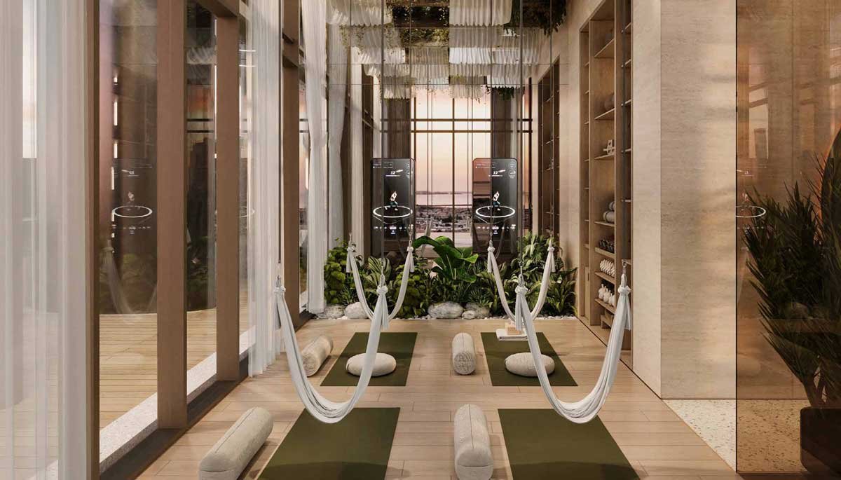 Hermès-accessorized 17-story waterfront homes with resort-style facilities.