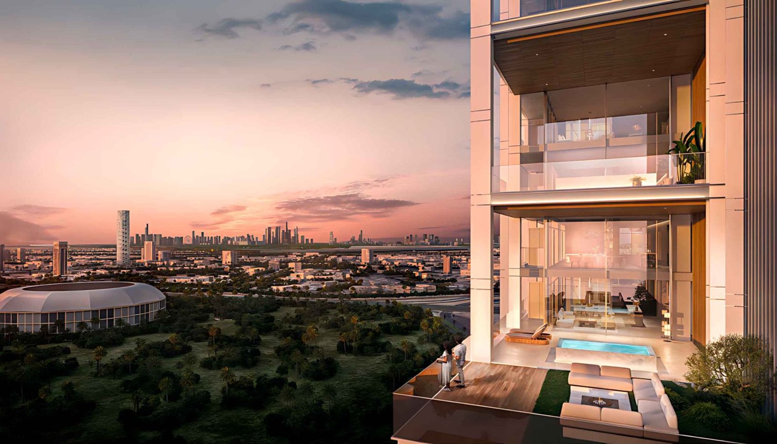 Sierra by Iman stands as a sculptural emblem of modern elegance—its silhouette rising over Dubai’s Motor City with stately poise. Comprising 593 impeccably conceived homes, Sierra is more than a place to reside; it is a realm of elevated proportions and polished privacy. Anchored by a 75,000 sq.ft. podium sanctuary, the tower exemplifies a new paradigm of vertical luxury—harmonizing light, space, and serenity.