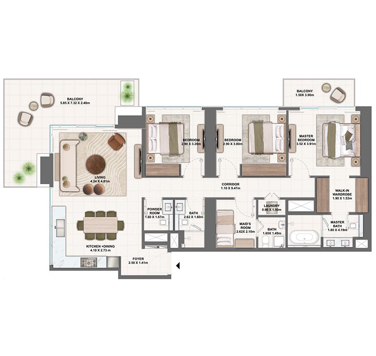 - 3-Bedroom Townhouses: Generous layouts exceeding 2,800 sq.ft., epitomizing grandeur