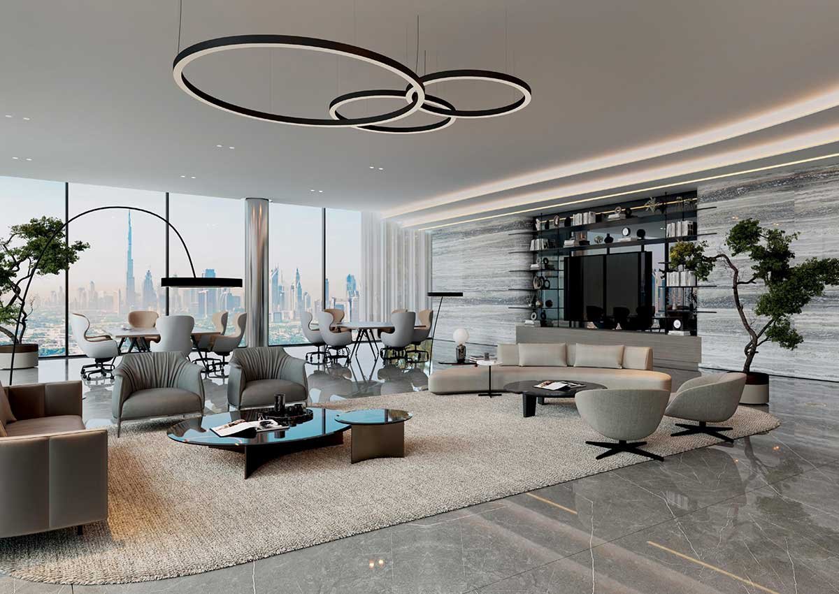 Architecturally, the project features two striking residential towers elevated on a three-level podium, comprising 36 residential floors along with four basement levels, a ground floor, and two dedicated retail floors. Interiors are thoughtfully designed with an elegant color scheme and high-quality finishes, with fully furnished spaces that exude sophistication. Expansive balconies offer cozy lounge areas adorned with fresh greenery, while the exteriors provide breathtaking views of Dubai Hills, enhancing the overall aesthetic appeal of the development.