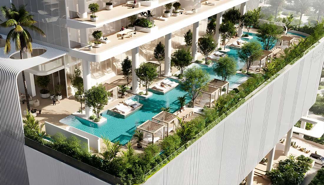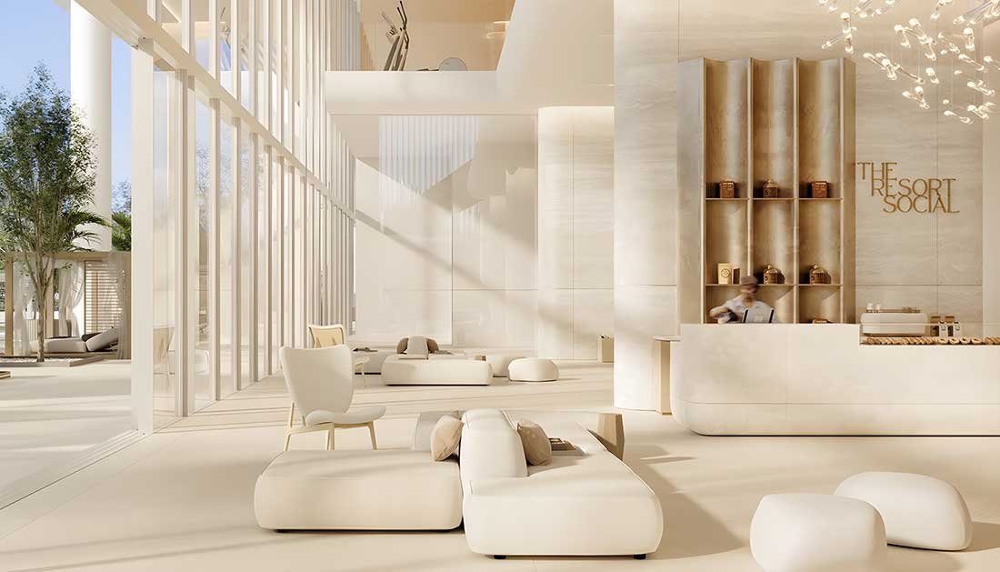 The project features three exclusive levels dedicated to relaxation, entertainment, and socializing—Ground Social, Resort Social, and Sky Social. These spaces offer an exceptional range of amenities, including an infinity pool with a relaxation area, a lounge, a bar, and a Sushi Omakase experience. Residents can also enjoy a 60-meter lagoon-style pool, a private club, a children’s water activity area, a cinema, and a health club with a gym, spa, and saunas. Additional facilities include paddle tennis courts, a running track, a barbecue area, and a fitness center.