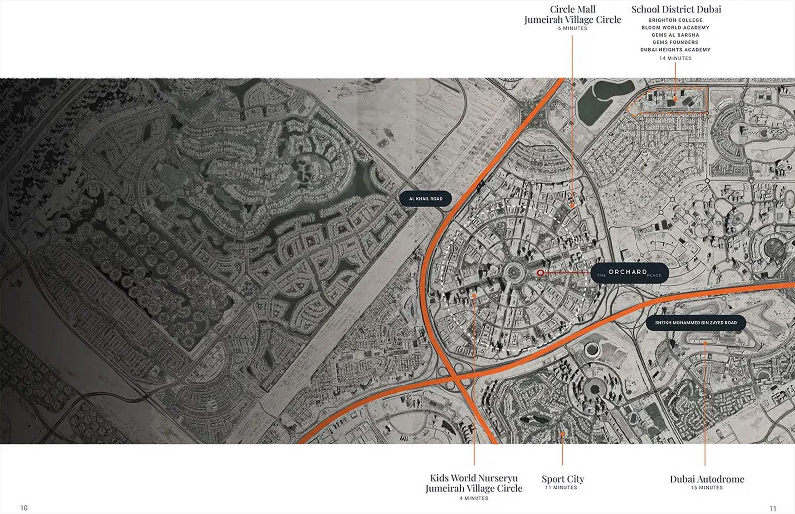 Located in one of Dubai’s fastest growing communities, JVC, The Orchard Place offers a unique blend of city living and natural ambiance. Being surrounded by parks from three sides, the development offers an escape from the hustle and bustle while still being close to essential facilities and destinations.