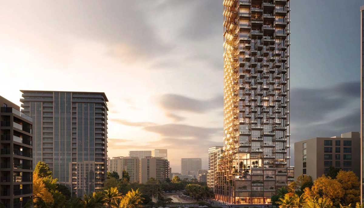 The Symphony is an ultra-luxury mixed-use tower in Meydan Horizon, MBR City, designed by Zaha Hadid Architects. Inspired by Al Sadu and Al Talli crafts, the building features fluid glass geometry and a sculptural form. It includes fully furnished 1–3BR residences, Master Suite Duplexes, Grade A offices, and premium retail, fitted with Bosch, GESSI, Villeroy & Boch, Geberit, Samsung, and Alexa. Amenities include wellness facilities, social spaces, outdoor decks, and a landscaped podium.