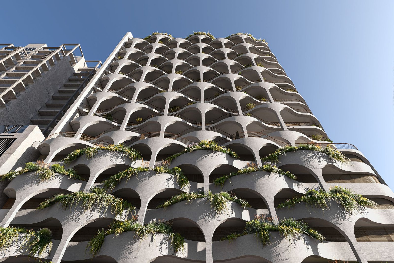 Its distinctive façade is inspired by the intricate weaving of palm fronds, highlighting the versatility and beauty of natural materials found in the Middle Eastern landscape. Across the façade, intertwining balconies give way to beautiful homes that exude warmth and peace.