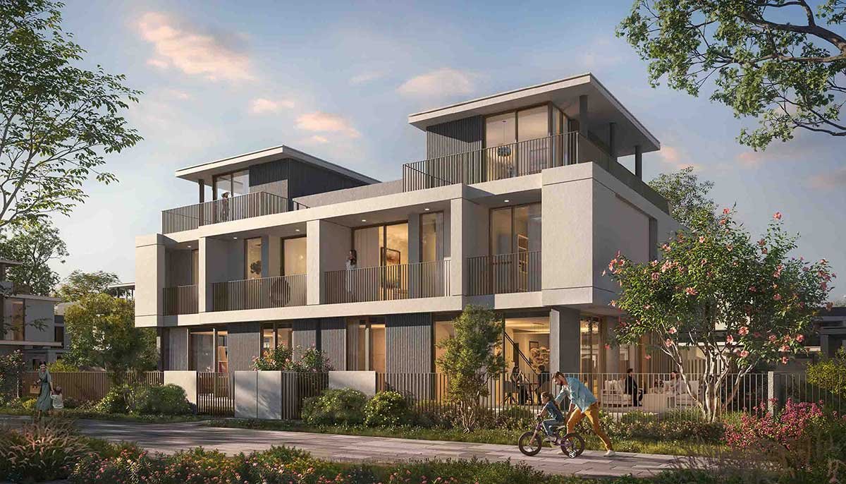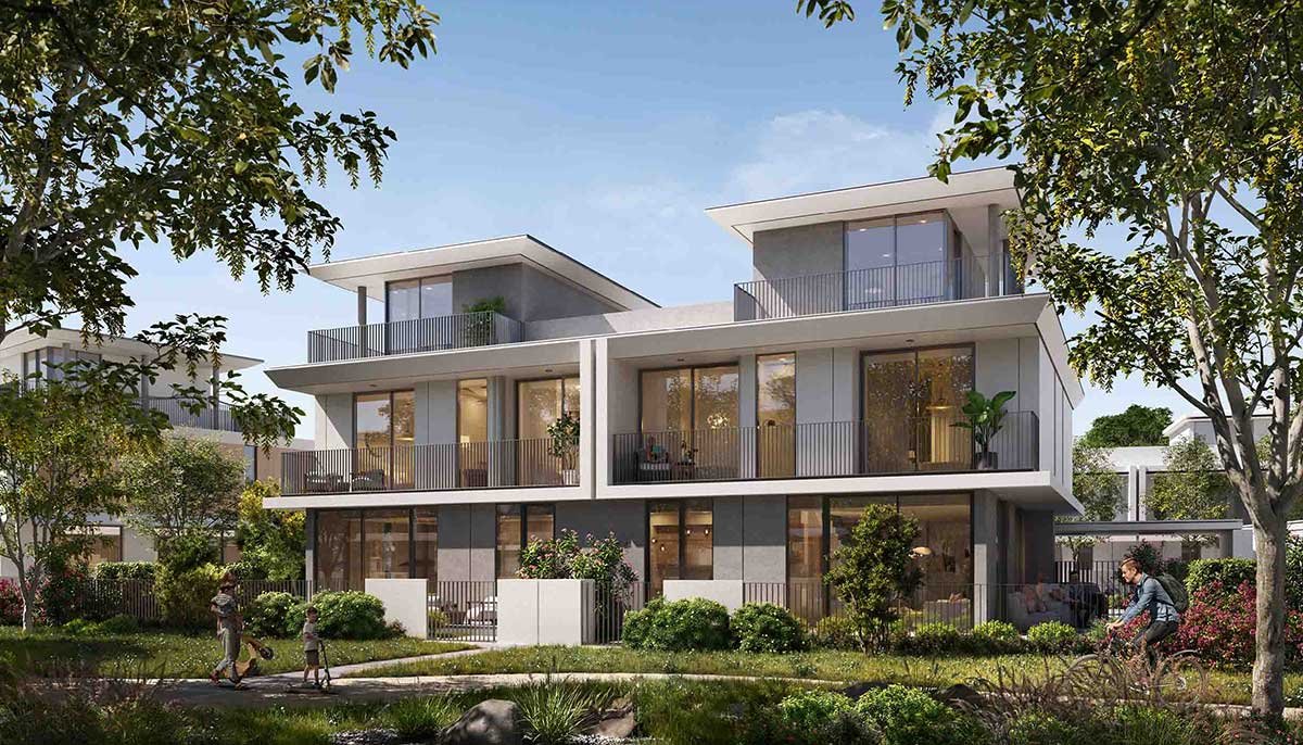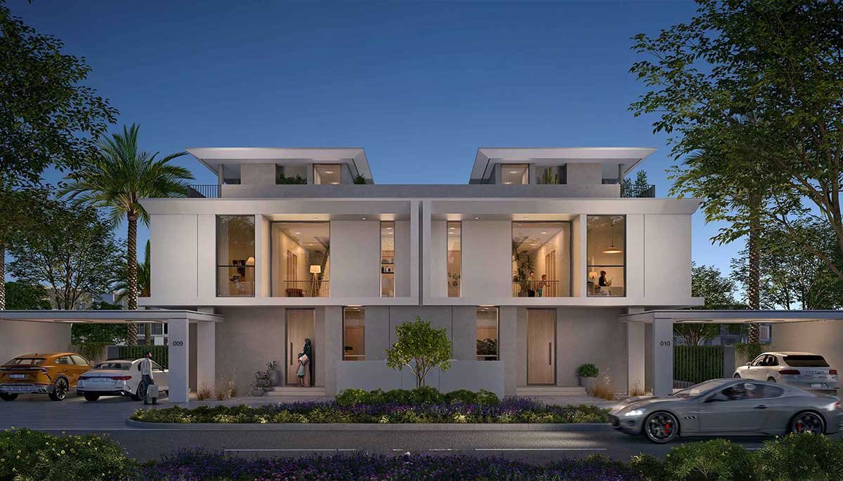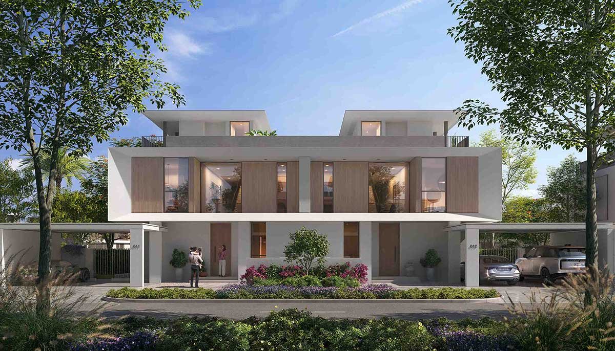 This exclusive sub-community features elegant 4-bedroom townhouses, each overlooking lush green parks. With a spacious built-up area of 3,700 sq. ft, these homes combine comfort, style and functionality. Prices start from AED 4.85M (USD 1.3M).