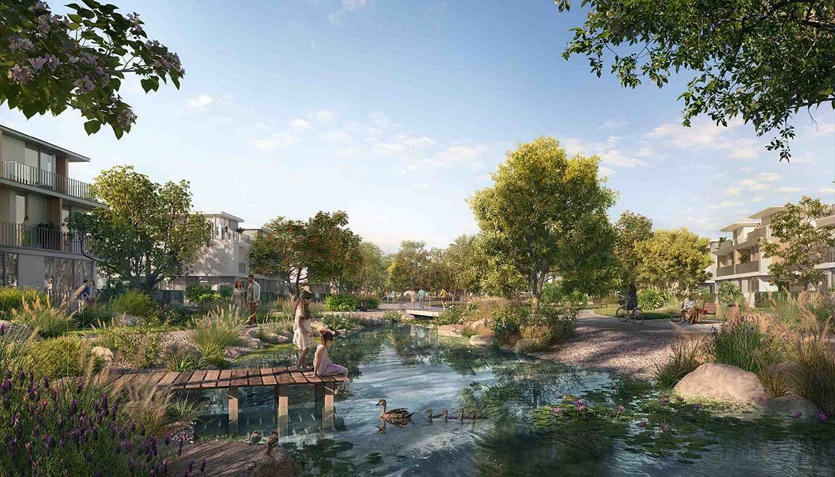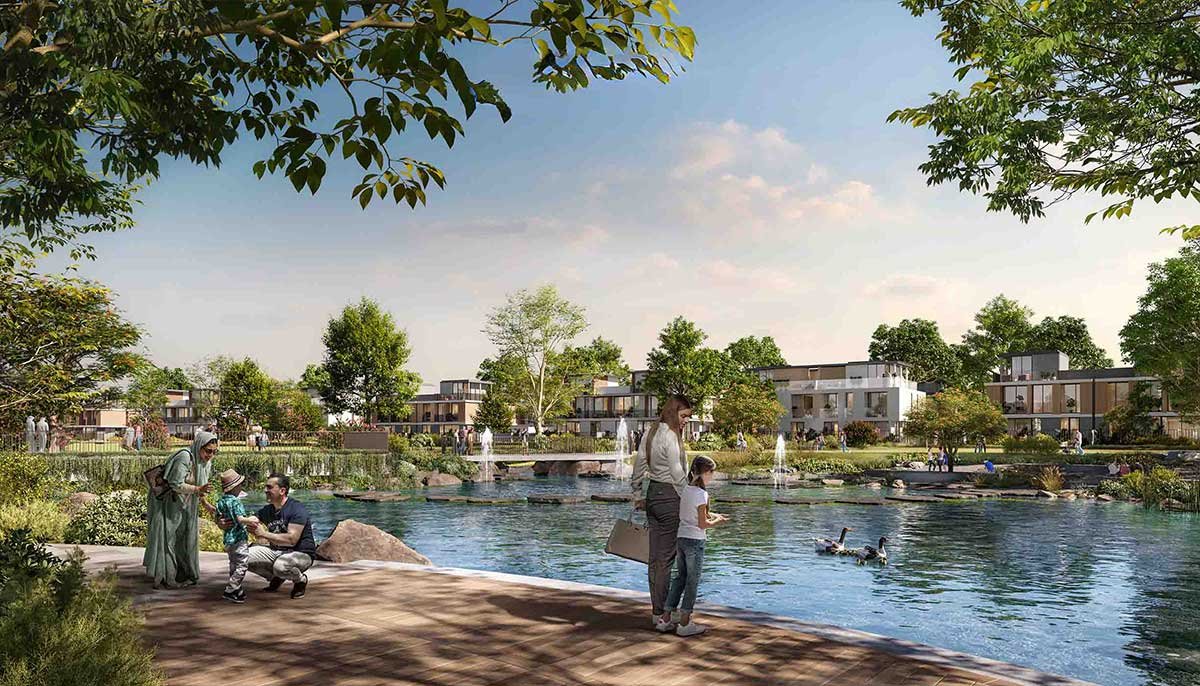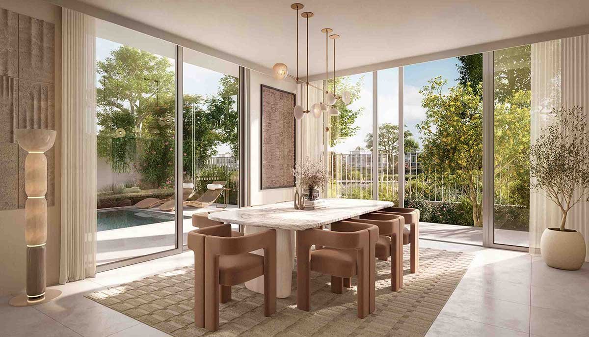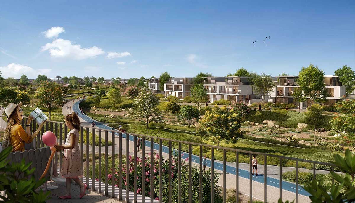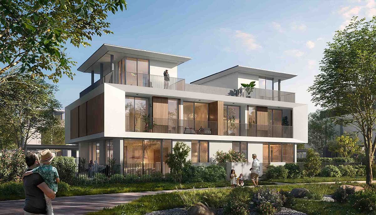 This exclusive sub-community features elegant 4-bedroom townhouses, each overlooking lush green parks. With a spacious built-up area of 3,700 sq. ft, these homes combine comfort, style and functionality. Prices start from AED 4.85M (USD 1.3M).