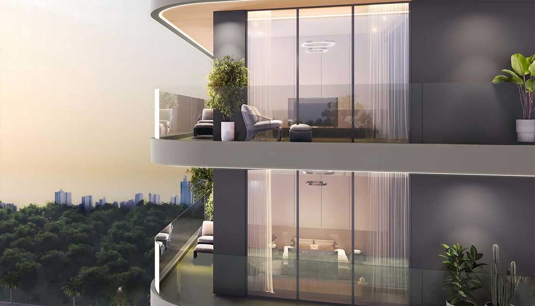 The premium development is strategically located at the intersection of Yalais Street/Jebel Ali-Al Hibab Road and Sheikh Mohammed Bin Zayed Road. This prime positioning allows residents to access key areas of Dubai, such as Dubai Marina and Business Bay, in under 20 minutes. Additionally, both international airports are reachable in approximately 30 minutes.