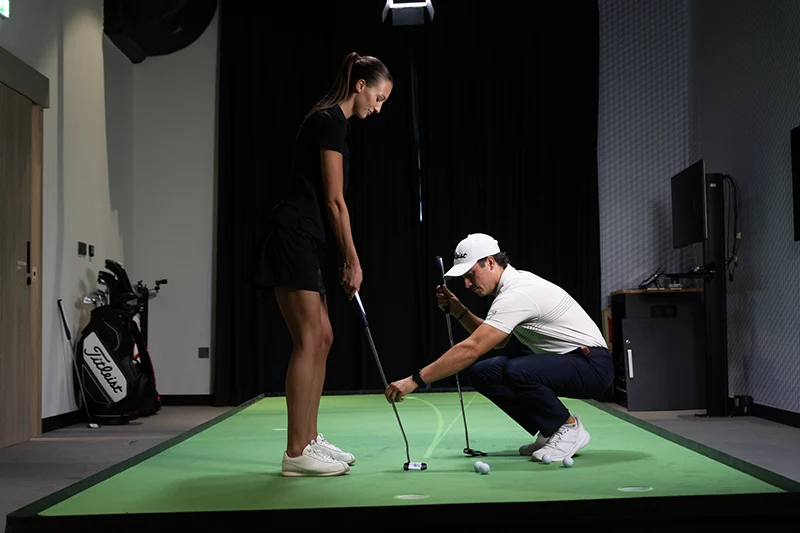 Step into the indoor putting studio and train on the Zen GreenStage, paired with real-time visual feedback from PuttView. From pace and break to alignment, every element is tracked and analyzed — turning guesswork into data-driven improvement.
